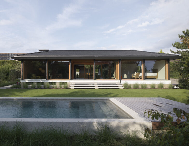Der Umbau präsentiert sich als atmosphärische Mischung aus Prairie House und Japanischem Pavillon.