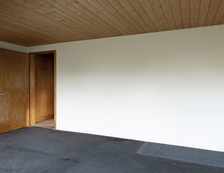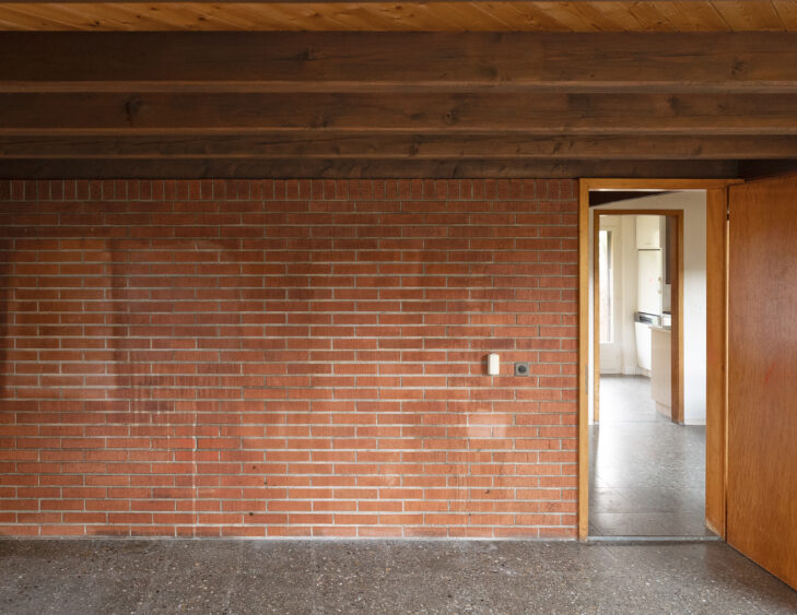 Das originale Sichtmauerwerk aus rotem Ziegel verankert das Haus in seiner Zeit und zeugt von der Qualität des Bestandes. Geschliffene Betonböden, Lärchenholz, Glasmosaik und fein verputzte Wände verweben den Charakter der ursprünglichen Materialien zu einer zeitgemässen, klaren Architektursprache.